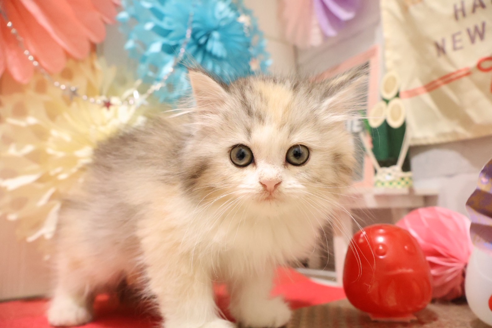 | 毛色 | シルバーパッチドタビーホワイト |